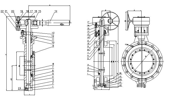 a.对夹蝶阀 b.法兰连接金属硬密封蝶阀