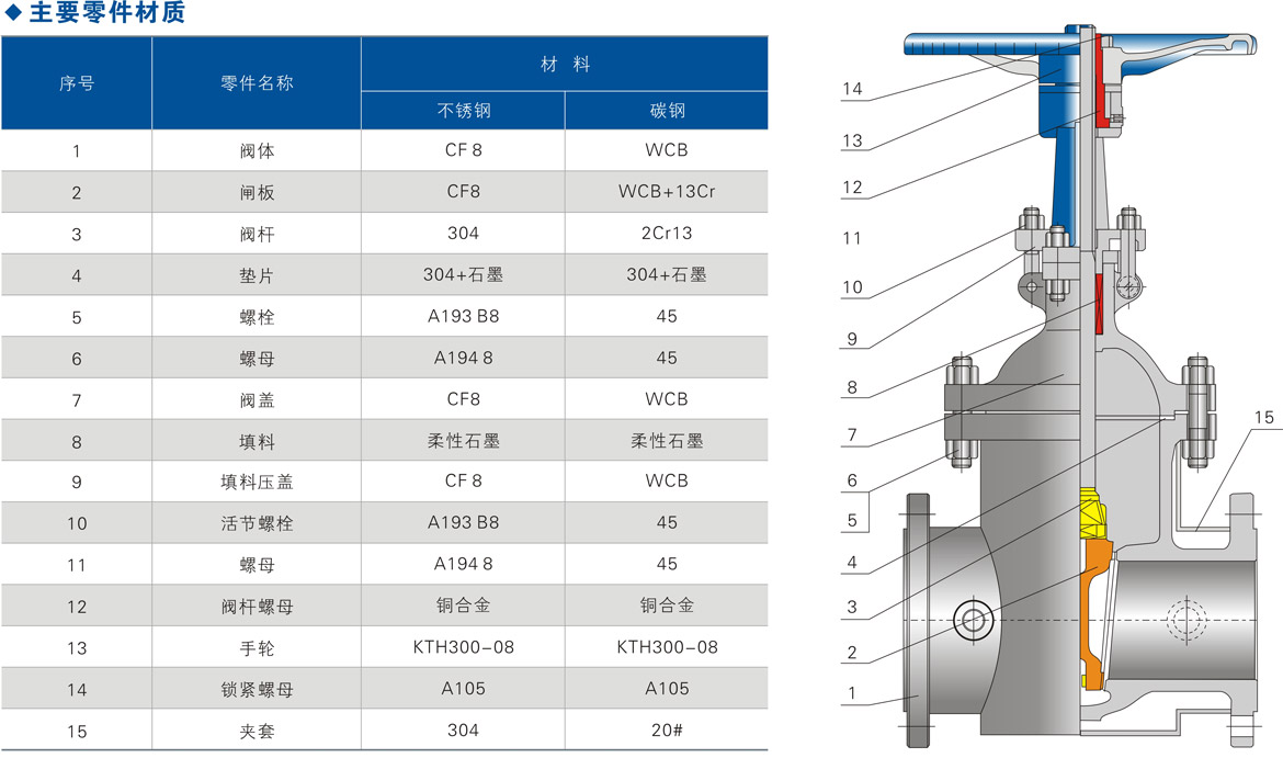 ③阀盖中道垫片形式:PN10~PN40闸阀采用不锈钢石墨复合垫片;PN63~PN100闸阀采用不锈钢石墨缠绕垫片; PN160自密封闸阀采用自压密封金属环。