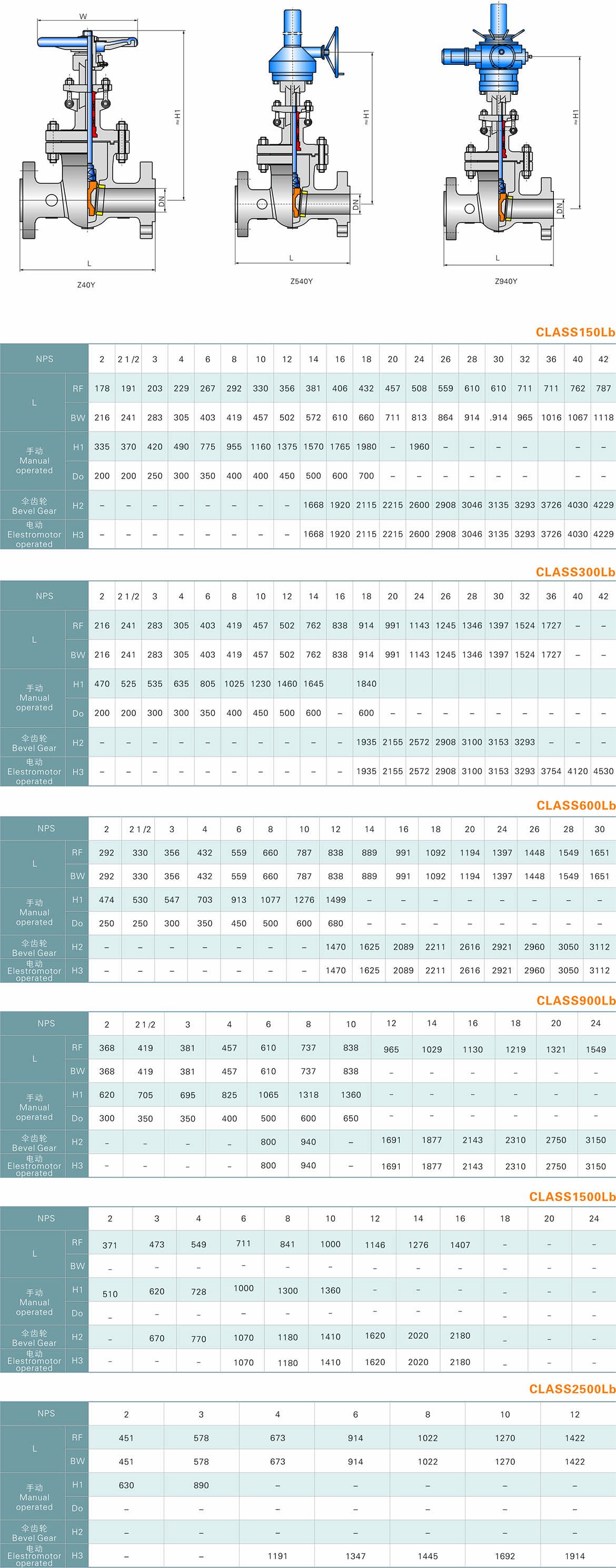 ①阀体和阀盖连接形式:Class150~ Class900采用栓接阀盖;Class1500~Class2500采用自压密封式阀盖。